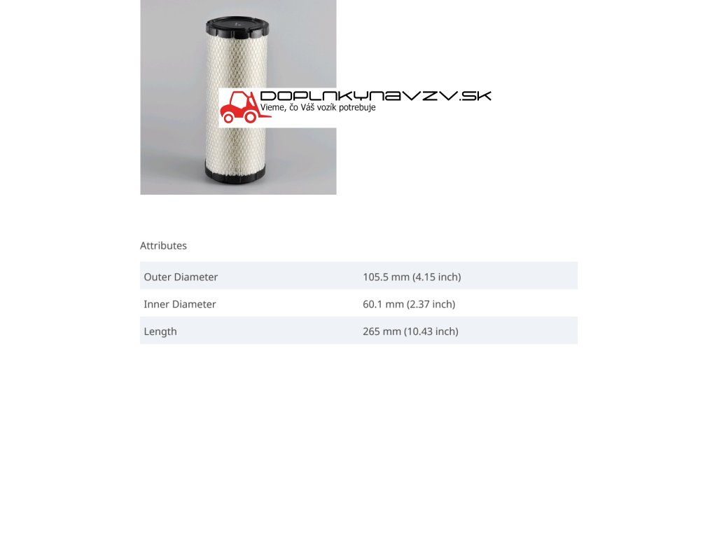 Vzduchový filter na JUNGHEINRICH DFG316 - 265x105,5 mm